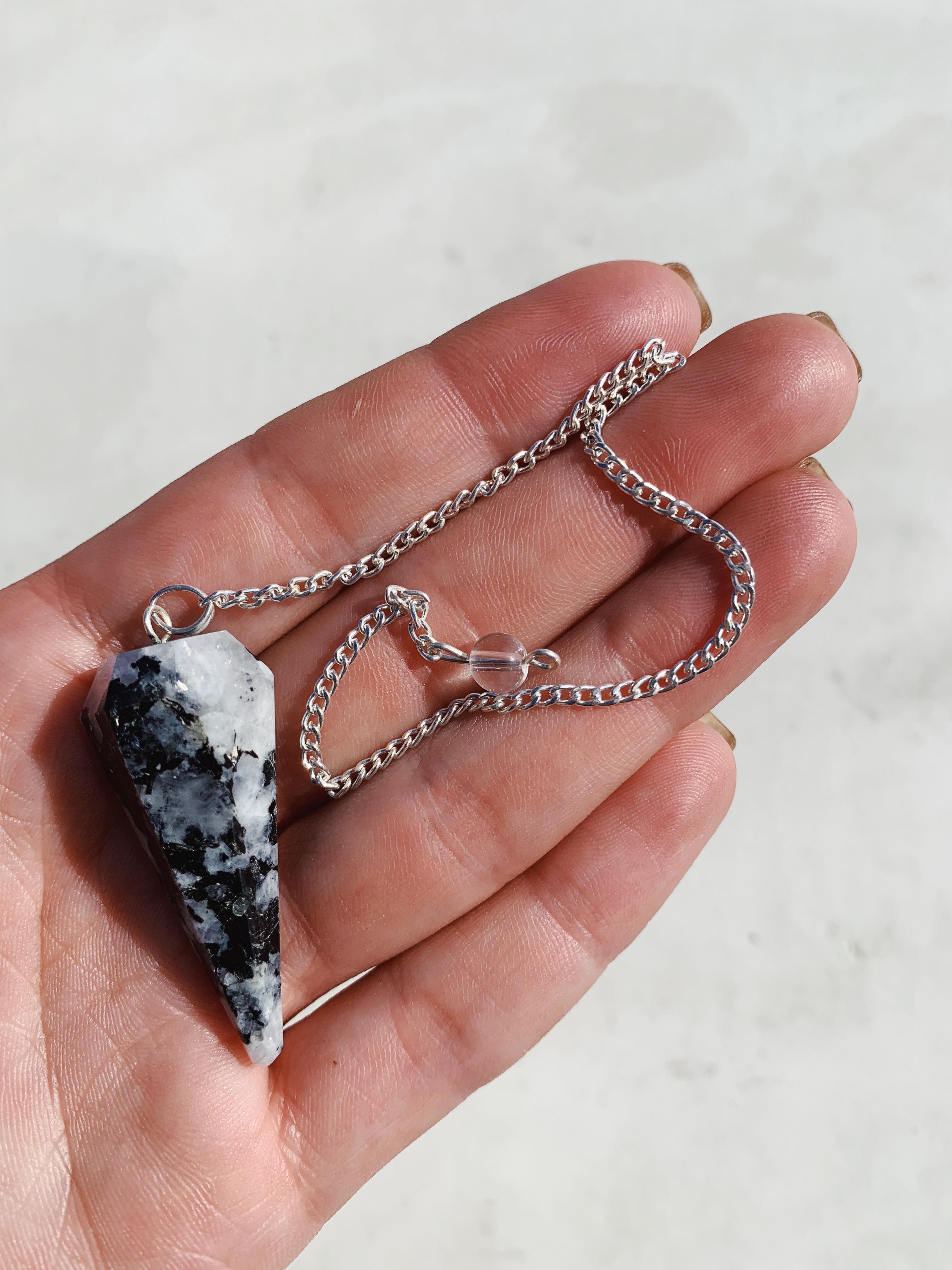 Use this tool for accessing inner wisdom and intuition. Hold the pendulum in your hand and set a clear intention, as the pendulum swings ask the universe for guidance. Pendulums are powerful tools for clarity, spiritual connection, or emotional healing, and can be a valuable tool for exploring your inner self and connecting with higher consciousness and spiritual energies.